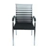 Ergonomic Armrests: Curved metal arms topped with contoured black guards for improved arm positioning and comfort.